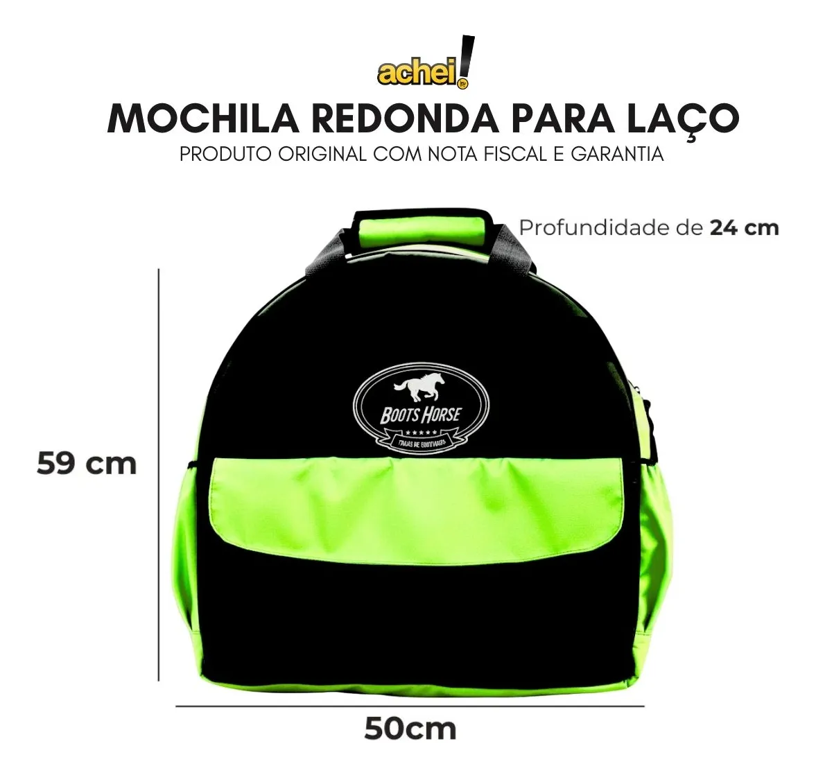 Bolsa Para Laço Redonda Mochila Cores Equinos Boots Horse Verde Limão