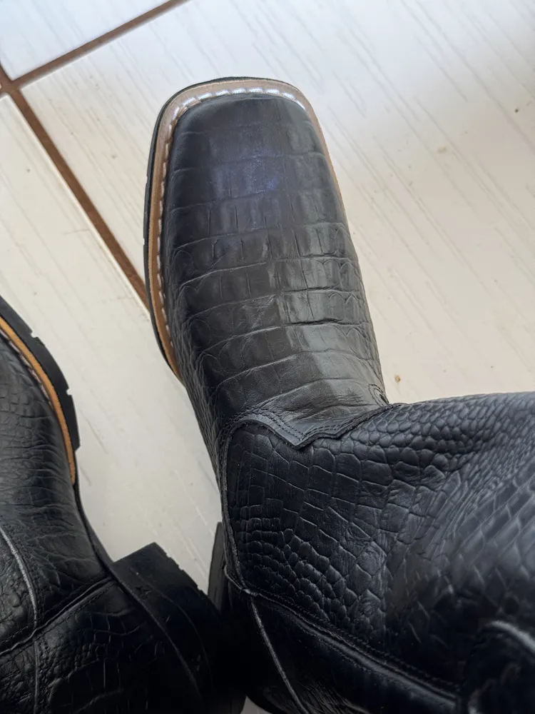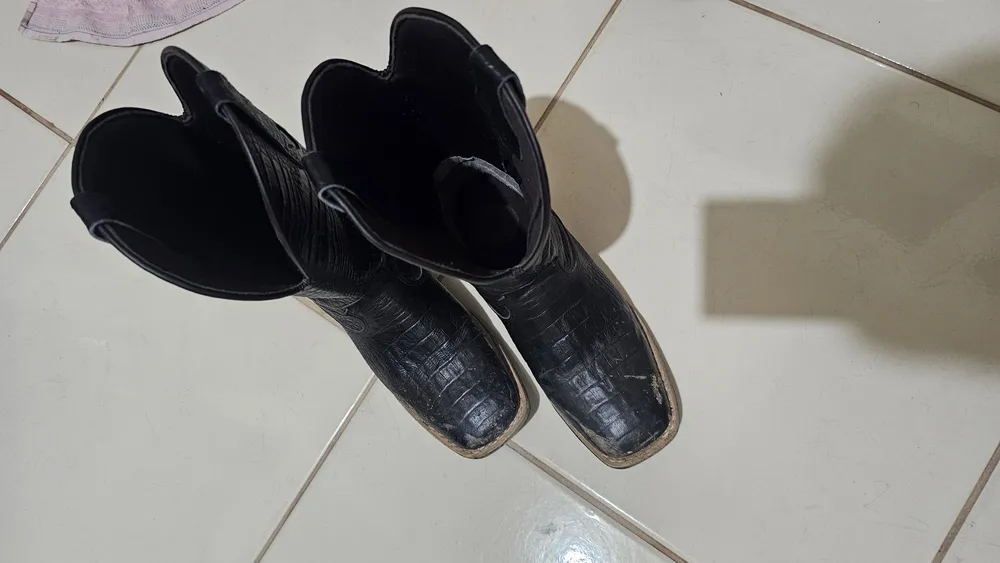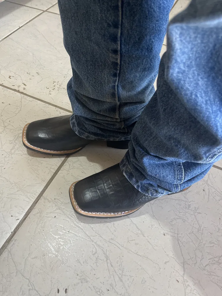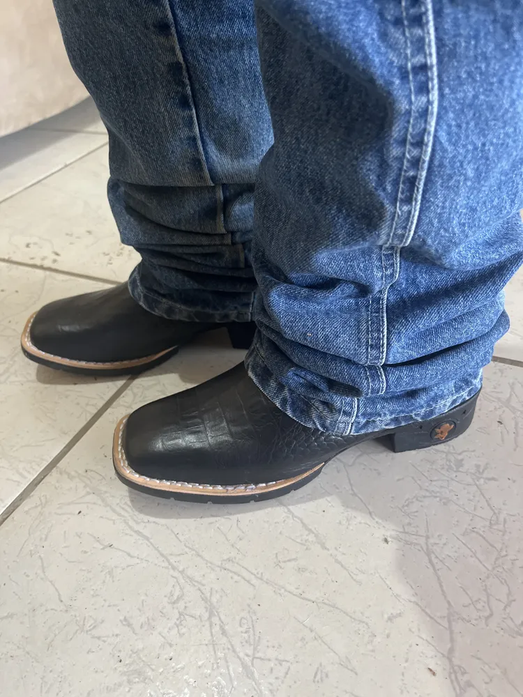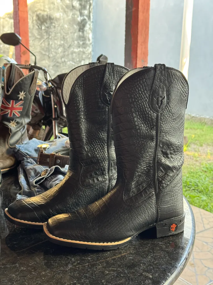 Bota Texana Country Em Couro Legítimo Exótico Premium Preta