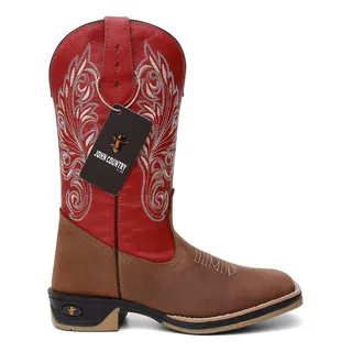 Bota Texana Country Masculina Em Couro Legítimo Vermelha