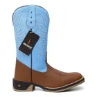 Esta bota texana é fabricada com 100% couro legítimo, garantindo durabilidade e conforto. Possui bico quadrado, cano alto com bordados detalhados e solado de borracha colado e costurado, oferecendo segurança e estilo. O forro interno em couro proporciona um toque suave e agradável aos pés.