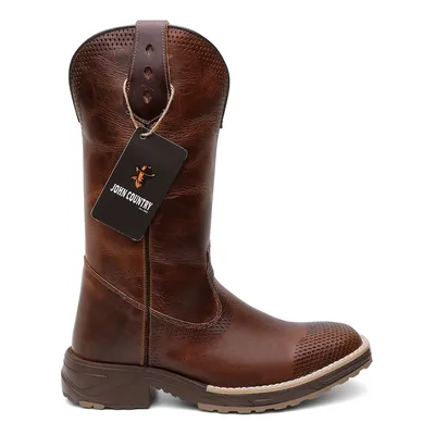 Esta bota texana masculina da John Country é confeccionada em couro legítimo, garantindo durabilidade e conforto. Possui bico quadrado, cano alto e solado extra light exclusivo, proporcionando um visual autêntico e moderno. O forro interno em FootDry oferece maior respirabilidade e bem-estar aos seus pés.