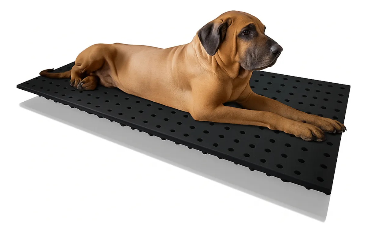 Seu design vazado permite o escoamento de líquidos, mantendo o ambiente mais seco e limpo, além de facilitar a higienização da baia.