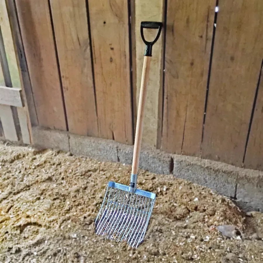 "O Garfo Forcado é indicado para limpar baias forradas de maravalhas (raspa, cepilho de madeira) - é muito mais leve do que os similares de ferro e muito mais resistente do que os similares de plástico"