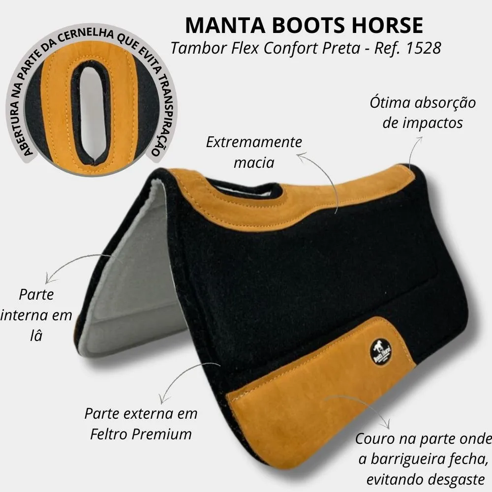 Manta Boots Horse Tambor Flex Confort Preta - Ref. 1528