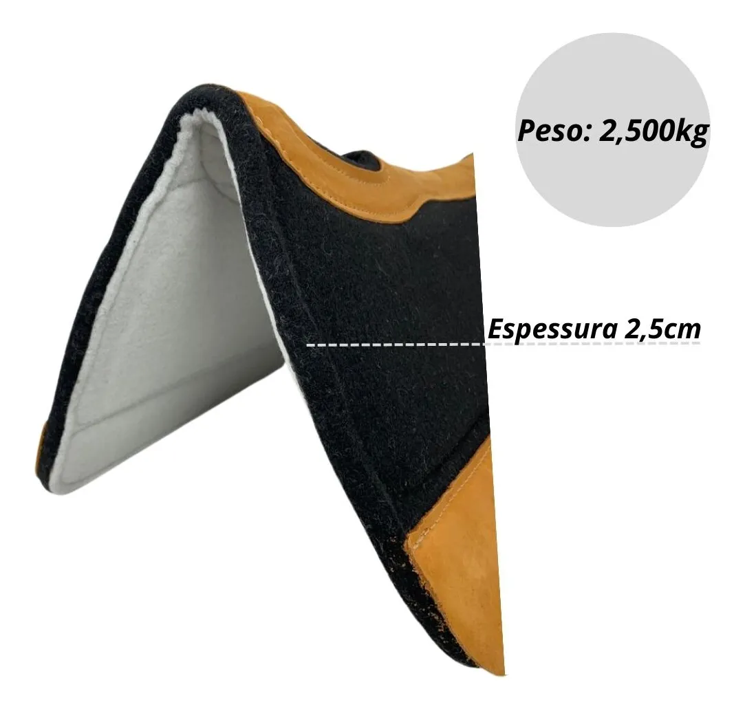 - Formato com abertura na cernelha, ajudando a diminuir a transpiração do cavalo;
