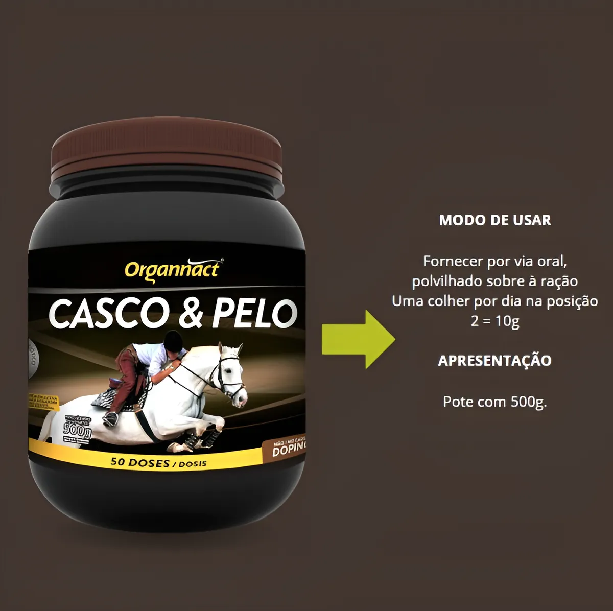 Suplemento Casco&Pelo Equinos 500g - Estimula Crescimento marca Organnact