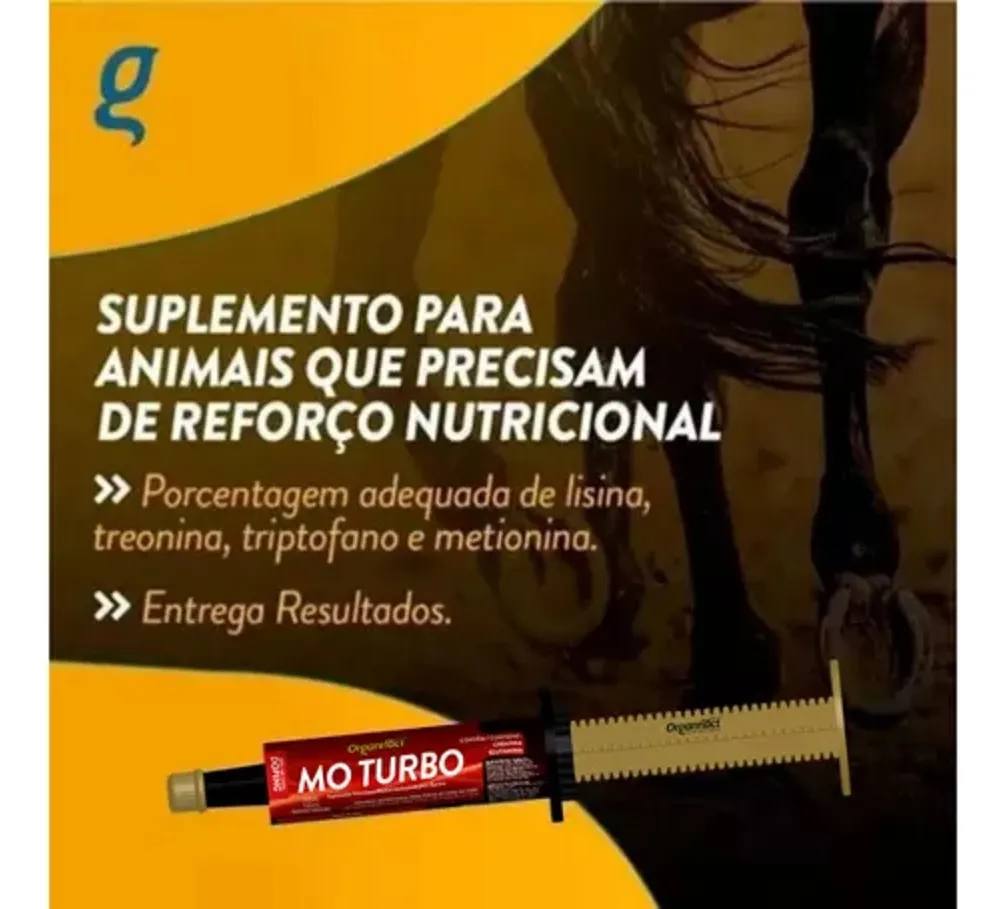 O Suplemento Mo Turbo da Organnact é um suplemento vitamínico mineral aminoácido essencial para equinos em todas as fases da vida. Sua formulação equilibrada oferece suporte nutricional completo, promovendo a saúde, o desempenho e o bem-estar dos animais. Ideal para criadores e proprietários que buscam o melhor para seus cavalos.
