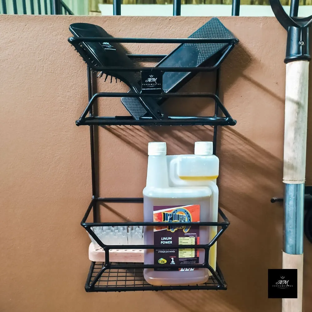 Um suporte prático para fixar ao lado da porta cocheira do animal, para que a suplementação\produtos de limpeza de cada cavalo fique já separada e próxima ao animal.