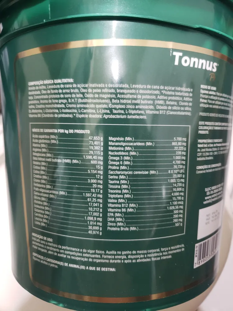 Contém em sua formulação aminoácidos, com destaque para os BCAAs, além de Gama-Orizanol, Cromo Quelato, Ômega 3, Pré e Probióticos, que melhoram o desempenho dos animais de elite. Tonnus Pó JCR é indicado para todas as raças e modalidades esportivas. O produto proporciona a melhora da condição atlética dos cavalos, atuando na energia, força, resistência, recuperação e manutenção do desempenho.